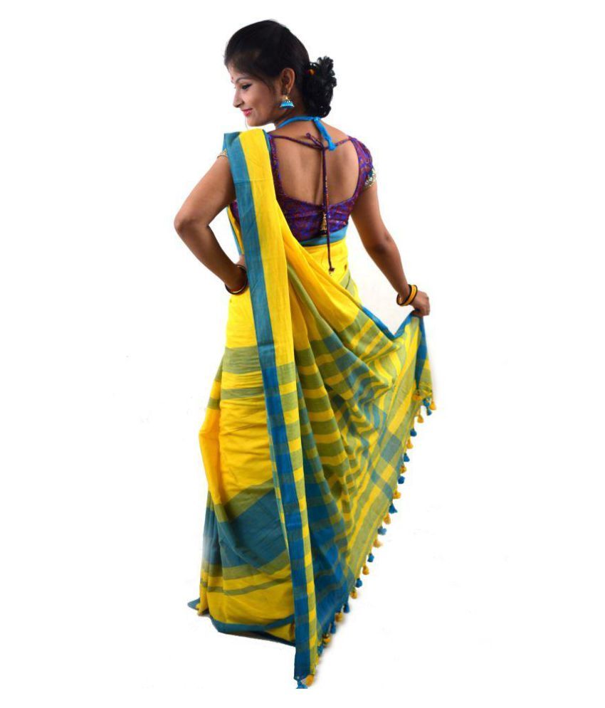 Nishuj Fashions Khadi Cotton Saree With Blouse Material - View Full