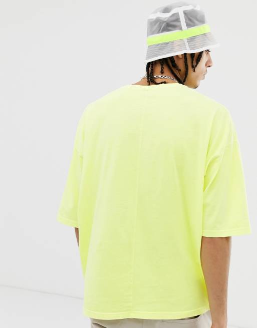 Asos Design Oversized T Shirt With Half Sleeve In Washed Neon Yellow - View Full