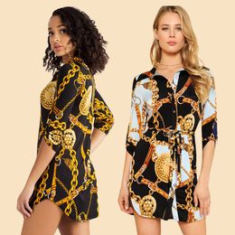 Spring Autumn New Designer Shirt Dress Women Female Casual Shirt Chain Design Printed Mini Dresses - View Full