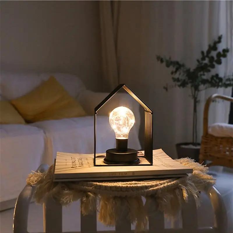 Us 1263 43 Offeuropean House Pattern Table Lamp Bedroom Decorative Stand Desk Light For Bedroom Living Room Decor Battery Operated Lamp In Desk - View Full