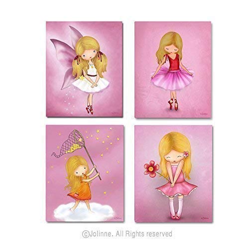 Nursery Art Posters Girls Bedroom Decoration Pink Room Design Ballerina Angel Personalized With Hair And Skin Color - View Full