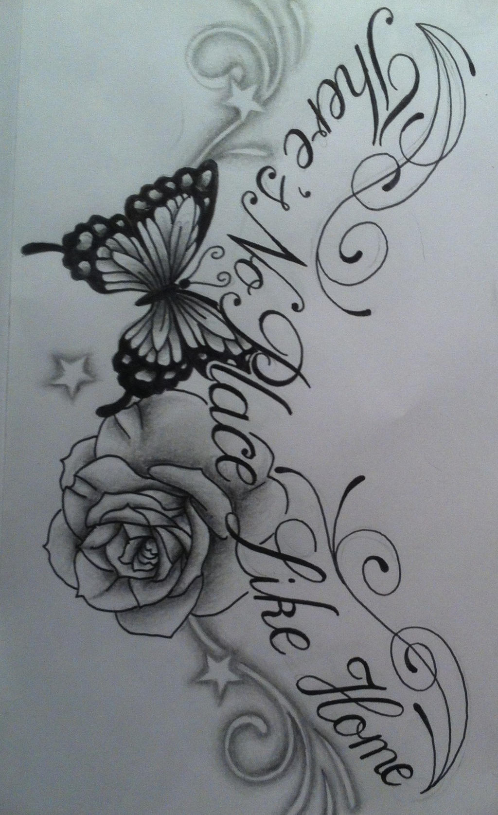 Butterfly Rose Chest Tattoo Design With Text By - View Full