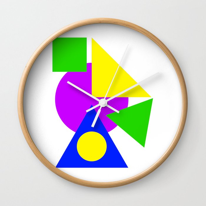 Colourful Simple Shapes Art Green Purple Blue And Yellow Bright Decor Artwork Gift Wall Clock By Hypedesigns - View Full