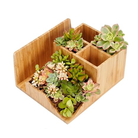 Mobilevision Bamboo Succulent Plant Holder Desktop Organizer For Pens Pencils Files Notepads Gift For Back To School Teachers Employees Assistants - View Full